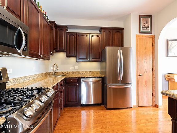 Gorgeous and meticulously maintained 3 bedroom 2 1/2 bath unit with a full finished basement. Features include 42" staggered cherry cabinets, granite counters, stainless appliances, hardwood floors, vaulted ceilings, spacious baths, full master suite with walk-in closet and huge bath, oak railings, custom red oak wet bar and wine rack in the professionally finished basement is made for entertaining and watching sporting events, concrete patio, whole house fan, new front door, oversized 2 1/2 car garage with storage loft, and cabinets included, beautiful landscaping and even a relaxing front porch.