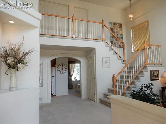 Stunning, Immaculate 5 Bed Home! Step In And Wow Over 17 1/2 Foot Vaulted Ceiling in Living Room & Several Windows! Arched Doorway Leads To Kitchen Or Formal Dining Room. Look Down Over Living Room From 2nd Floor Which Has 4 Bedrooms. Adj. 5-Piece Master Bath! Fin. Basement Has 5th Bedroom, Large Family/Entertainment Room & 4th Bath w/Shower. Front & Back Sprinkler Sys! Fenced Back Is Amazing! Terraced Back Has Many Vegetable Varieties & Flowers! Near DaVinci Academy Elementary & Park w/Lake & Awesome Pikes Peak Views!
