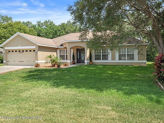 Active Under Contract - Accepting Back Offers . WELCOME HOME!!! This home is a dollhouse,,, conveniently located in central Spring Hill's desirable 34608 zip. A charming and contemporary 3/2/2 with an incredibly popular floorplan and a great yard. From the time you arrive the home boasts elegance and pride of ownership. Greeted by cathedral ceilings and openness, enter into a soothing color pallet with the Family room to the right and formal dining to the left, proceeding to a generous Living Room and updated kitchen. Recently renovated Island Kitchen boasts a fresh remodel including beautiful granite counters, updated cabinets, eat in area, breakfast bar, and a full compliment Stainless Steel appliance package. Master bedroom is also generous in size and includes his and hers walk in closets. Master bath recently updated to include granite counters, double vanities, and stylish cabinetry. Across the split second and third bedrooms are both also generous in size and share the recently updated second full bath. Outside offers a concrete patio and an oversized recently resodded St Augustine yard. Plenty of room to play, entertain, and relax. Please don't forget Hernando County is in the heart of FLORIDA'S NATURE COAST, with tens of thousands of acres of State FORESTS, Public access to some of the States most notable RIVERS, LAKES, and of course the GULF OF MEXICO. So drive, walk, run, paddle, but come and make your FLORIDA DREAM a reality. Enjoy the pictures then Call and schedule your showing today.