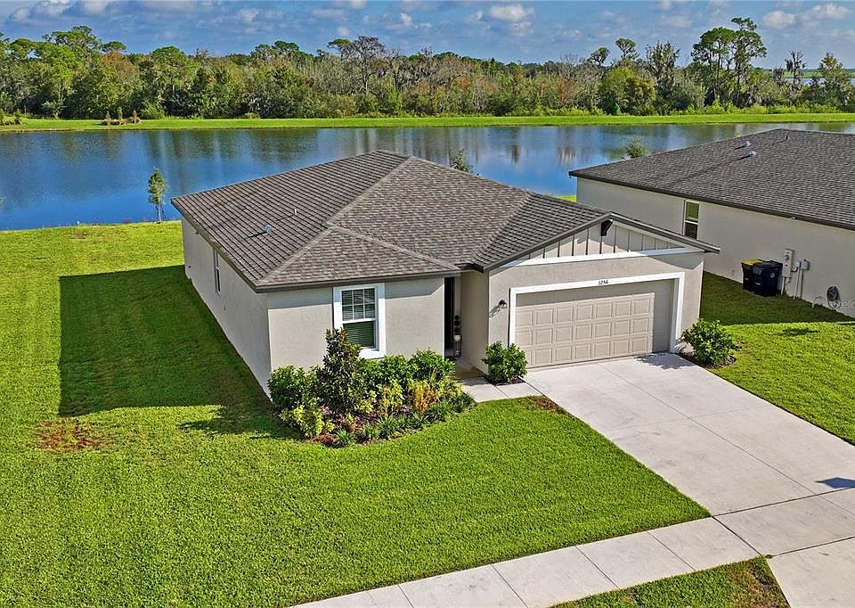PRICE REDUCED, MOTIVATED SELLER! Why wait for a new build when you can have a Bluebell model today with WATER and CONSERVATION VIEW! **Welcome Home to Your Dream Oasis! ** Discover Florida living in this stunning sleek upgraded package home crafted by Meritage Homes located in the vibrant Reserve at Van Oaks! This exquisite 3-bedroom, 2-bathroom home is 1,491 square feet of beautifully designed OPEN FLOOR PLAN space, perfect for both convenience and entertaining. Nestled on a spacious 60 ft lot, you'll be captivated by breathtaking water views and serene conservation areas that provide a picturesque backdrop to your daily life. The modern kitchen is a chef's delight, featuring sleek whirlpool appliances and a 9.5' x 17' Island, all while offering stunning views of your private paradise. Retreat to the spacious primary suite, complete with a spacious bathroom with walk in shower, ensuring your personal sanctuary for unwinding after a long day. Outside, enjoy the community's sparkling pool and inviting cabana—perfect for soaking up the sun or hosting weekend get-togethers. Located just moments from top-rated schools, beloved local restaurants, and exciting attractions like Disney, Legoland, Tampa and the Orlando Airport, your new home offers the best of both worlds. With quick access to I-4, Polk Parkway, US 92, and I-75, exploring all that Central Florida has to give never been easier. As a newer construction, this home has been gently lived in for under 2 years. This home has many features that are made for convenience, and 60 HERS score for energy saving, with a keypad front door and thicker blown insulation in attic to keep home at a comfortable temperature year-round. Don’t miss this chance to make this beautiful home yours—Your dream lifestyle awaits! Set your appointment today and don’t miss this opportunity as it is the only expansive water and conservation view lot available for sale to date.