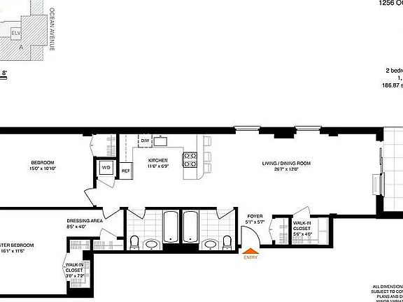Massive floor-through apartment with terrace & balcony. Interior sq footage is 1,200 sq ft & exterior is 200 sq ft. This is an extremely rare find and very unique two bedroom apartment. The Elena, located at 1256 Ocean Avenue is a collection of studio, one and two bedroom apartments located close to Brooklyn College, The Brooklyn Center for Performing Arts, Target, Home Goods and Avenue J which is lined with local shops and restaurants including Di Fara's Pizza, Oh Nuts and Junee. The apartments feature open floor plans, stainless steel appliances, hardwood floors, large windows, huge closets and some have private outdoor spaces. This newly constructed 8 story building has 26 homes, a gym, common roof deck and parking is available for an additional fee.