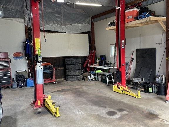 Country living is the perfect setting for this 3 bedroom 2 bath ranch home with a wrap around deck to enjoy the quiet of nature with outstanding views of the countryside. This well maintained home features laminate flooring in the kitchen and dining room, total electric, well designed plaster finishing and a sliding door with the built in blinds. The walk out basement has a full bath and laundry room and the family room area has already been insulated and just waiting for you to put the finishing touches on it. The 28x32 garage is perfect to start a small business or for that weekend fix it person, equipped with a air compressor, 9000# 16' lift. The invisible dog fence will be perfect if you have fur babies. Updates include applainces 2020, metal roof 2020, wood burner 2021, AC 2022. Don't let this one get away, call now for your private viewing before it's gone.