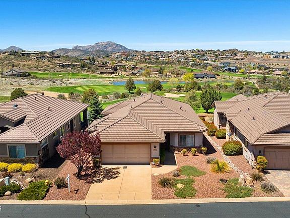Savor in the million dollar views from this barely lived in Creekside home in Prescott Lakes. This gated community is conveniently located adjacent to the Club allowing you to walk to the putting green, athletic club and stroll home after dinner at the Grille through the Creekside path. This property is perfectly situated to capture amazing sunsets, panoramic views and gorgeous views of Granite Mountain. The home is adjacent to the first hole, close enough to enjoy the golfers but with enough distance to offer privacy. The finishes are truly classic and offer that timeless style with tumbled marble tile and traditional wood cabinetry. There is a Free to Air Antenna on the house. The property is a single level home with 3 bedrooms and 2.5 bathrooms.