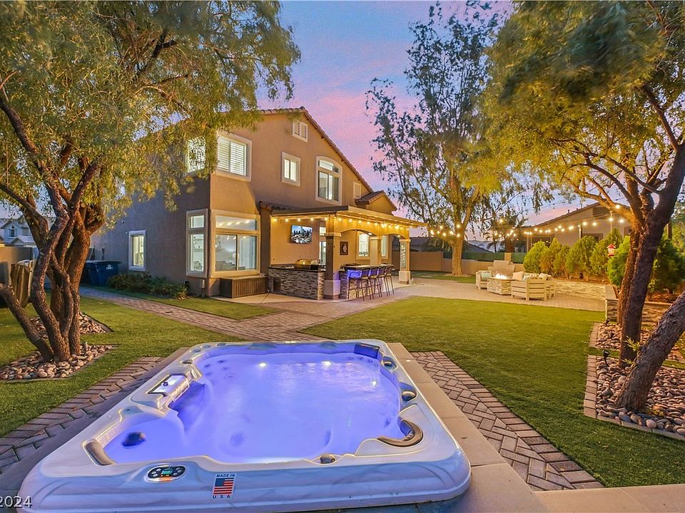 Welcome to 1256 Rising Cloud in Seven Hills. This exquisite two-story updated home features 5 bedrooms and is situated on a huge lot that includes a convenient first-floor bedroom. The 5th bedroom is a generously sized flex space, perfect for a bedroom, office, or living area. The remodeled kitchen boasts quartz countertops and stainless-steel appliances. The family room offers a modern electric fireplace with stone accent wall. Entertain in the formal living and dining rooms, with high vaulted ceilings and abundant natural light. Outside, enjoy the low-maintenance backyard oasis with artificial turf, a patio, fire pit, built-in spa, and a custom bar. This desireable Henderson neighborhood is zoned for highly-rated schools and offers easy access to dining, shopping, and the freeway. Don't wait to see this gorgeous home as it won't last long!