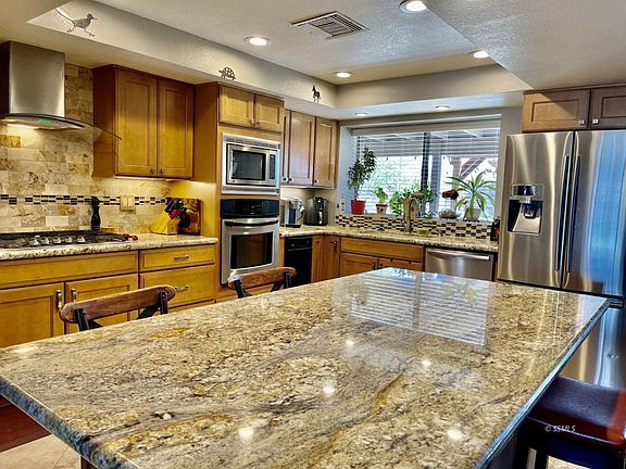 If you're looking for a home with land, this property has so much to offer. With over 2900 square-feet and 5 acres of land that is completely fenced. The kitchen and bathrooms have been beautifully remodeled. With granite counter tops and tile backsplash, lighting underneath the cabinets, recess lighting, and stainless steel appliances in the kitchen. The master bath and guest bath have been remodeled with granite counter tops, new cabinetry, tile showers, with 2 shower heads in the master. All bedrooms are featuring their own walk in closets. The garage is 1000 square-foot with the longest cement driveway! Featuring a covered carport, RV Parking, a large barn with horse stalls, tack room, a large work room, covered hay storage, and 2 large arenas. In the backyard there is a built in bbq with pergola covering, a pool and hot tub. The front yard is xeriscaped, and the backyard has turf with lots of shrubs and trees. There is a block wall around the perimeter of the house. You cannot build for this price with all the amenities. Gorgeous Mountain & City Views! It is worth the trip out to view this gorgeous property!