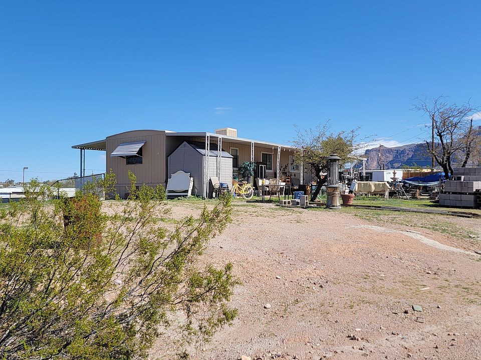 Superstition Views are Amazing from this property plus it has a long driveway all the way from Starr to 13th Ave so you can pull all the way through with large vehicles! Manufactured home is ''as-is'' and needs work - value is in the land! Neighbor on South is stick-built home, other manufactured homes in the area. City Water! There is room for an RV to be parked next to the existing manufactured home and hook-ups are in place. Lots of potential - must see to appreciate!