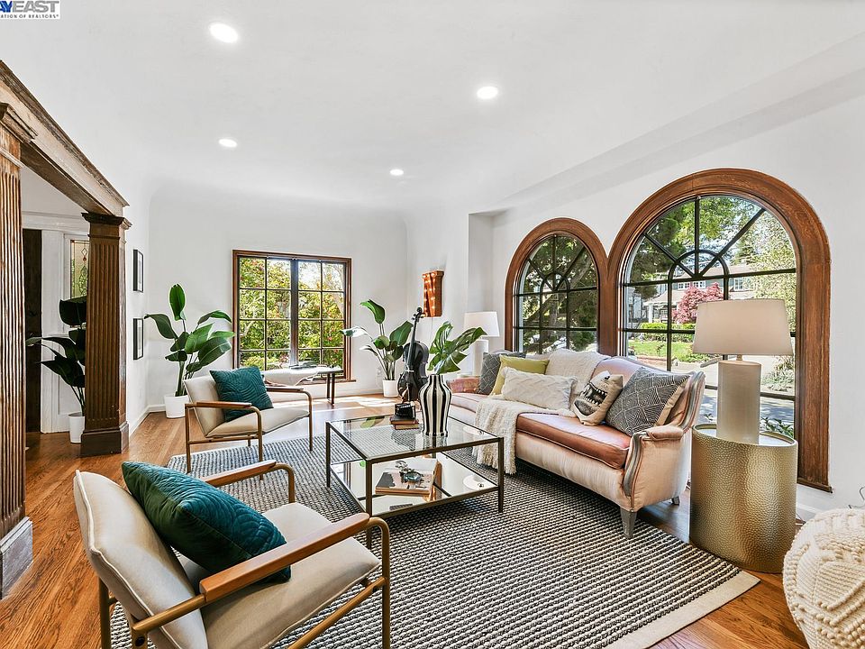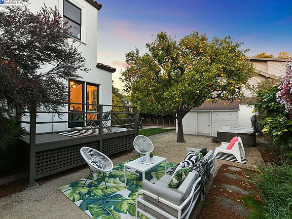 Located on a corner lot in the distinguished Gold Coast neighborhood (near parks and sought-after schools), sits this enchanting 4BD/2.5BA 1915 Spanish Revival featuring French doors, Juliet balcony, oak carved banister, coved ceilings, vintage built-ins and trims. With 2,408 sqft, the main level includes a formal entry, living room with dramatic arched windows, spacious dining room with beamed ceilings, powder room, laundry room with smart W/D, and stairs to a large basement that can be a bonus room. The updated eat-in kitchen features: Miele refrigerator, dual ovens, subway tile, and natural stone counters overlooking the sunny backyard. The upper level is anchored by 4 sun-filled bedrooms; 3 with large walk-in closets and the fourth features a charming closet with built-in dresser. Add a wall to create a two-room primary suite, capturing a full bath with a shower over clawfoot tub. The remodeled second bathroom features a soaking tub, walk-in glass shower, marble finishes and double vanity. The backyard is a retreat of fruit bearing trees, succulents, verdant lawn, and a hot tub. A detached farmhouse-style garage has pitched ceiling and rustic beams—a perfect artist studio or office. Blocks to beaches, shops, cafes, and one block to the coveted Franklin Elementary.