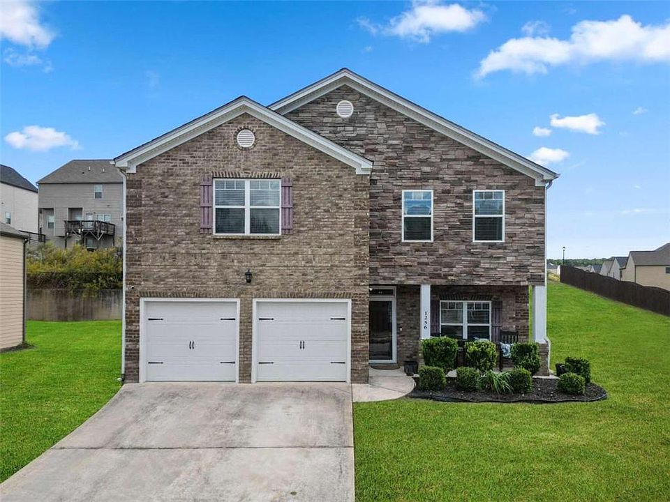 Welcome to Summergate At Stoney Creek! This Vivian plan is a graceful haven, boasts 4 large bedrooms and 2.5 bathrooms, offering a warm embrace to a lovely family or a soul seeking solace. The heart of this dwelling, an open kitchen, connects seamlessly to the family room. Outside, a two-car garage stands guard, while a fenced backyard and a welcoming front porch offer refuge and respite. Enjoy the sunset on the rear patio that invites you to a spacious backyard. With a timeless union of brick and stone on the front facade and granite countertops, kitchen island and kitchen backsplash give an elegant appeal, fireplace in the livingroom, this home blends elegance with functionality. Your future here is accompanied by modern conveniences, with the refrigerator, washer, and dryer included. Beyond your doorstep lies a world of opportunities - shopping, local dining, and the allure of Interstate 75, Atlanta Motor Speedway, and the retail wonderland of Fayetteville Pavilion and the Tanger Outlet. As well, enjoy nearby Lake Spivey, Lake Spivey Golf Club, and Clayton County International Park. This home isn't just a space; it's a place where your heart finds its rhythm, where your dreams take flight.