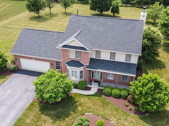 This Fantastic 2 story traditional style property is nestled on a Country lot of 1.2 Acres that backs up to a Boone County Nature Preservation Area. Step in the inviting covered front porch that leads into the foyer, where newer hardwood flooring flows through the home. Convenient office or den with French doors off the foyer. Spacious family room with full brick fireplace and a wall of windows inviting all the natural light to come in with a great view of the yard. Formal dining room, currently used as a sitting room. Eat in Kitchen, pantry, SS appliances. A Good size laundry room, conveniently located on the main level. Finished lower level with family room with partial exposure, French doors to an office, exercise area with Plenty of storage space. Walk to the rear of the home through the sliding doors to the brick patio with a Pergola, and enjoy the large backyard with plenty of space. You have the option to build a second garage for the hobbiest, extra toys, car collections, for a larger vehicle or RV, an architectural outbuilding can be approved by the subdivision. Belvidere North School District. Schedule an appointment and come see this great home.