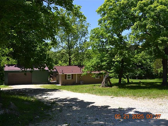 Super cute and move in ready 3 bedroom 1.5 bath home setting on 3.55 m/l secluded acres with lots of trees just outside of town with 3 sheds and a 30x20 detached concrete floor garage. Covered roof from garage to home. Lots of updates including new well pump and piping under home (2023), New storm doors and exterior doors, New water heater, new roof, 12x16 covered deck, newer appliances, 9ft garage door with lift, new furnace, wood pellet stove for heat, security system with window sensors, owned water softener and water filter, gutter guards, Lots of privacy and yet minutes from the conveniences of town, Workshop in detached garage with outlets, and everything on 1 main floor. Easy access with a step or two. This house FEELS like home and was VERY well taken care of. Call for your personal showing TODAY !!!