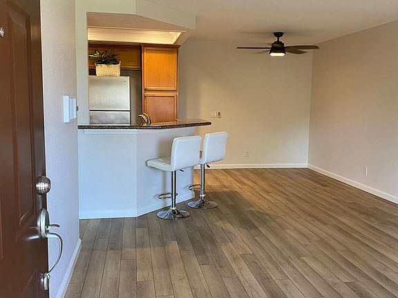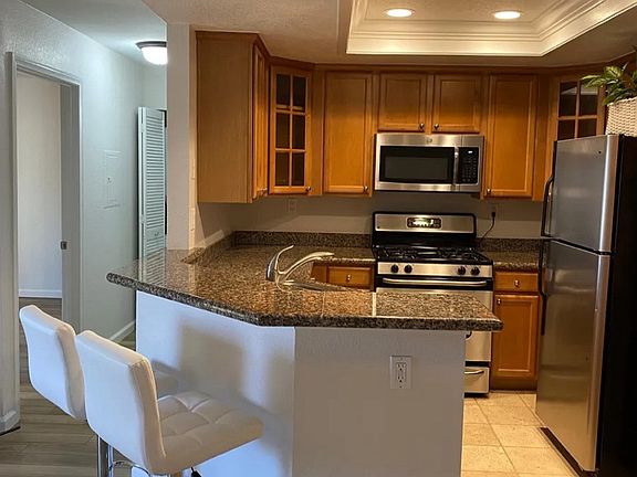 Pets welcome! No monthly pet deposit and no pet rent! Updated painted interior and window treatments. Eat-in kitchen. This lower level unit has a spacious enclosed outdoor patio which faces the greenbelt and water feature. Light colored luxury vinyl plank flooring (living room, dining room, hallway and bedroom) and natural stone tile (entryway, kitchen, and bathroom). All stainless steel kitchen upgrades (including dishwasher), maple tone cabinets (kitchen and bath), designer ceiling fan and matching light fixtures, granite counter tops (kitchen and bath), stackable washer and dryer, assigned carport with substantial storage. There is ample guest parking. Non-smoking as well as a non-vaping residence and condo community. This 14-acre condo park-like community has expansive greenbelts, mature landscaping, and walkways. There is a grassy picnic area with barbeques, assigned covered parking, and an additional laundry facility. It is located approximately 1-2 miles from Torrey Pines State Beach and near grocery stores, boutiques, and upscale restaurants and movie theater. Community amenities include a heated swimming pool, a therapy spa, a dry sauna, a sun deck, two lighted tennis courts, a fitness facility, and a clubhouse. One month's rent deposit. Minimum 720 credit score. $2850. rental payment per month. Renters insurance required for the duration of the lease. 12 month lease. 2 animals maximum. PetScreening fee may apply. Please contact owner for information or to schedule an appointment. Tenant(s) pays for the following: SDG&E Cable and Internet (If interested) Land-line (If interested). This is a non-smoking and non-vaping residence (including the enclosed patio). No animal shall be left unattended while on the patio. Renters insurance required for the duration of the lease. No subleasing any or part of the residence at any time. Compliance with HOA rules and regulations at all times.