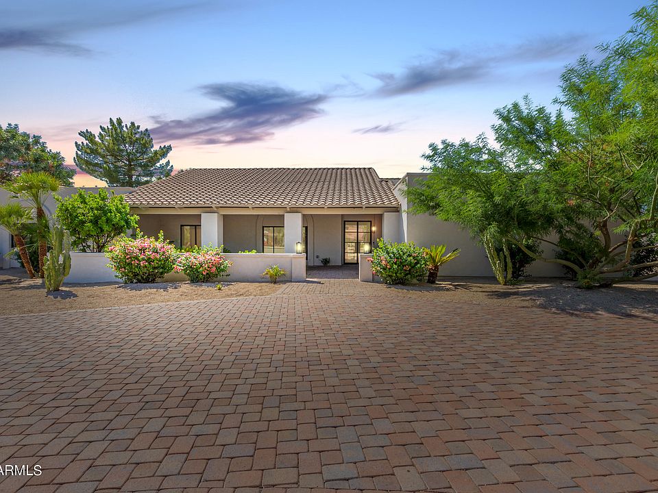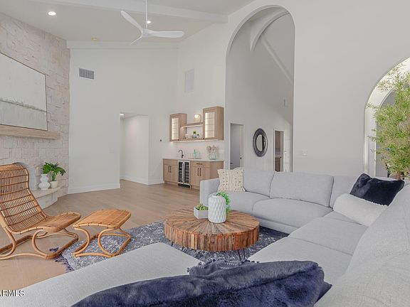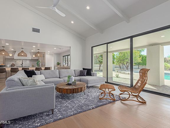 Immerse yourself in this sanctuary where organic modern fuses with Mediterranean elements to create a property unlike any other in Scottsdale. The residence was exquisitely constructed around a majestic atrium encasing a live olive tree, illuminated by a skylight, infusing life & ambiance into the core of the home. With almost 3800 sf & 5bd/4.5ba, the property was curated to induce a vacation-like experience w/ designer finishes, seamless indoor outdoor integration & primary retreat with an outdoor shower. The chef's kitchen boasts integrated appliances, oversized island w/ ample bar seating, 2 dishwashers, refrigerator drawers, built-in coffee bar & folding window w/ outdoor bar seating. Indulge in the massive backyard, w/ a sparkling pool, large turf area & grove of fruit bearing trees.