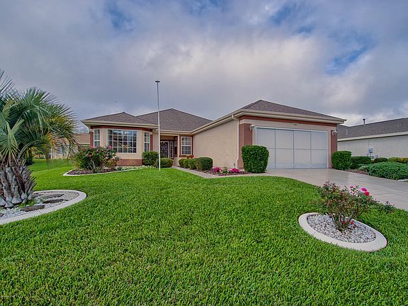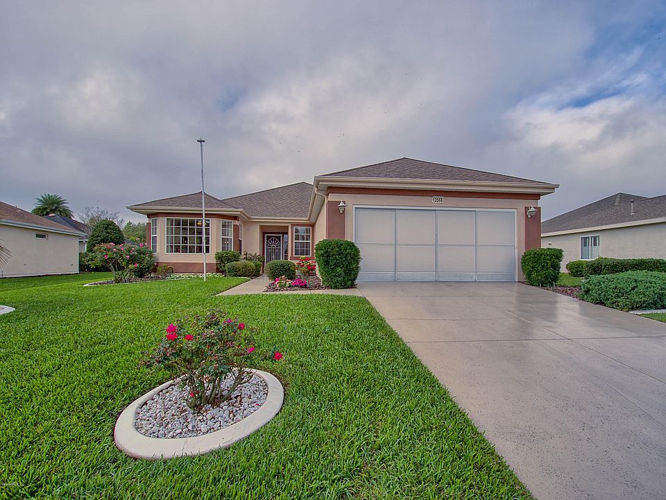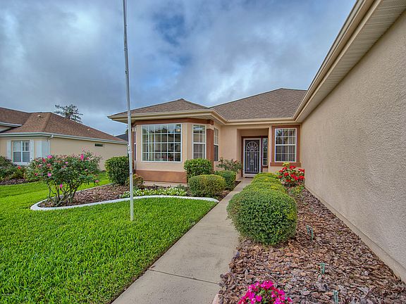 This beautiful, upgraded 2/2 Coral Gables model home is located in the TRUE gated community of Del Webb Spruce Creek Golf & Country Club. This home has been maintained with love. The exterior welcomes you with the painted driveway and walkway and easily maintained landscaping. Enter through the screened front door. The living areas and Master BR have Pergo flooring. The open floor plan will make entertaining a breeze. The extended eat in kitchen has SS appliances. Range and microwave are brand new. The lanai has been doubled in size from the standard to give you even more room to relax and enjoy! The Master BR has a beautiful bay window that is an upgrade from the standard model. Ceiling fan is brand new. The guest bedroom has newly installed carpet.