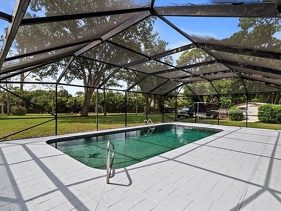 Beautiful 4 bedroom 2 1/2 bath pool home on sprawling 1.17 acres at the end of the cul-de-sac. This property is fully fenced with a side gate access with loads of room to store a boat or RV. No HOA! Features include updated kitchen and bathrooms & separate living, dining and family rooms. Impressive floor to ceiling double sided stone fireplace between the living and family rooms. Perfect place to gather on the holidays or any evening. Splash around in the inviting pool on those hot summer nights or unwind each night on the great covered patio enjoying the view. Well landscaped for privacy and enjoyment. This is a spacious home ready for you to make it your own. Recent Wind Mit & 4 Point inspection available in documents.