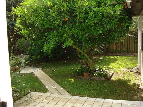 This home has curb appeal! 1500 SQ FT - Three bedrooms two baths and additional bonus room or office (no entry from the main house) and one car garage. Tile floors in the kitchen, dining room and laundry room, wood floor in the den/living room and the 3 bedrooms and office are carpeted. The backyard is privacy fenced and a haven of lush fruit trees - oranges, peaches, figs beautiful green grass and a patio just off the master bedroom. Master bedroom has sliding glass doors to enjoy all the beautiful back yard has to offer. This home is centrally located in a quiet neighborhood - not a through street and a springfed lake view across the street. This home is a must see. One year lease. Tenant pays all utilities. Available March 1, 2017, won't be open to show until last week in February.