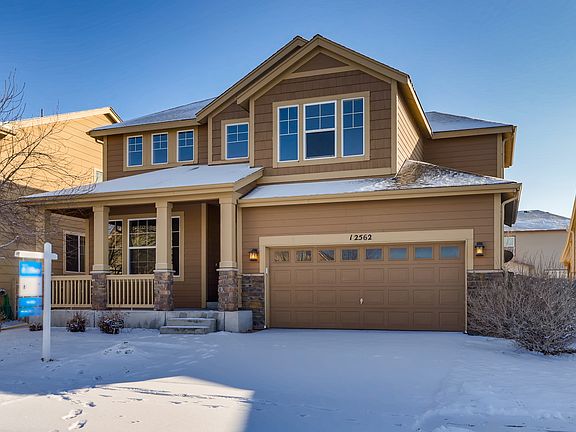 The beautiful curb appeal of this home in Turnberry Meadows invites you inside! The floor plan encompasses 4 spacious bedrooms with plenty of room for study, sleep, and storage, 3 luxurious bathrooms, and a sleek and stylish kitchen that flows through to the dining room, living room, and private rear patio. The primary bedroom is complete with a walk-in closet, and an en suite bathroom which features a dual sink vanity and a separate oversized bathtub. The kitchen is outfitted with granite countertops, a kitchen island, and plenty of cabinet space to make cooking a dream. Located near public transportation, DIA, major roads, and Buffalo Run Golf Course, this house is ready to be your home!