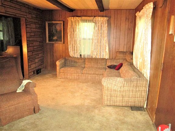 walk-out basement leading to river. Back patio over river with wood decks surrounding lower half of river. Concrete poured of three levels leading down to house .45 steps of concrete with railings going down to house. Extra large 2+ garage with heat and two overhead doors with remotes. And back sliding glass door with deck overlooking river. Extra 2 car carport. large shed for garden tools. Concrete driveway. Wonderful for water lovers also has one small deck for jet ski's or just fishing or sunning. one longer deck for boats and shorter deck with boat ramp. all with wood decks around for entertaining.