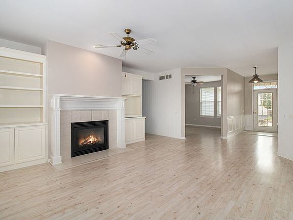 Del Webb Built Petoskey Model with Finished English Basement and 2.5 car garage~Light and Bright~Newer Roof~HVAC 2018~H20 2018~2 Bedrooms, 2.5 Baths~Den~Gas Fireplace in Living Room~Kitchen with Corian Counters, White Cabinets, Island and Bay Window, Extended Cabinets~Upgraded Light Fixtures~Ceiling Fans~Large Living Room w/Golf Course Views, Gas Fireplace and Light Color Laminate Floors~NEW Carpet in Bedrooms~most rooms freshly painted~Large Corner Lot~Finished Basement features large Family Room w/Wet Bar and 1/2 Bath, Berber Carpet~Beautiful Deck off Dining Room w/Pergola, Bar B Que Grill Included~Large Paver Patio w/Fire Pit~Nothing to do except MOVE IN and start enjoying all the GREAT Amenities that this Over 55 Adult Community Offers~See it TODAY!