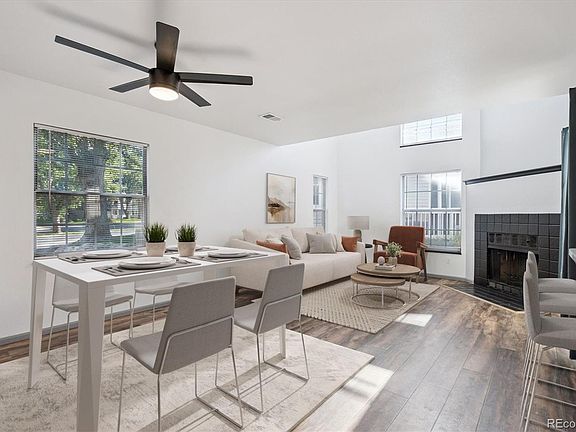 Welcome home to this light and bright renovated end-unit condo, centrally located in southwest Aurora. Brand new LVP flooring, fresh paint, curated finishes, and an open floor plan greet you upon entry and unfold to over 1,300+ sqft of functional living and entertaining space. The grand 2-story tall ceilings and oversized windows offer abundant natural light and complement the wood-burning fireplace within the living area. Enjoy preparing a meal in the updated eat-in kitchen featuring a stainless steel appliance package, white cabinetry with new hardware, and an inviting breakfast bar. Step outside to a private wrap-around patio for your morning cup of coffee or to relax in the evening hours. Upstairs, two primary suites include large closets and ensuite upgraded bathrooms. Additional features of this turnkey residence include a new water heater (2024), a new roof and AC (2023), in-unit laundry, and a new garage door (2023) on the attached 1-car finished garage with bonus storage space. Embarcadero in Willowridge includes an outdoor pool, community garden, and clubhouse, and is just moments from award-winning Cherry Creek Schools, Anschutz Medical Campus, light rail, parks, Kennedy Golf Course, shopping, dining, and major roadways. Do not hesitate to make this property your home; book your showing today!