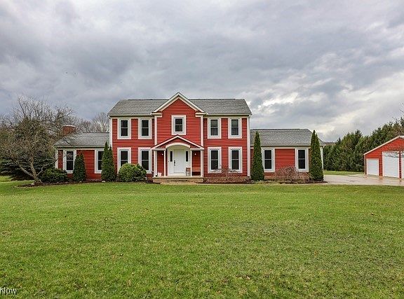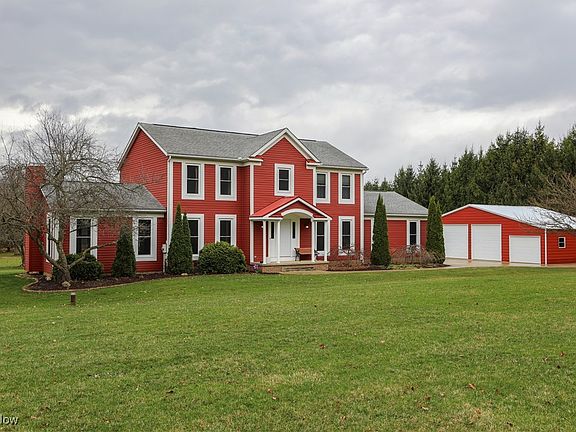 Welcome home to this beautiful 4 bedroom 2.5 bath Colonial in Hiram Township. Enter through the covered front porch and step into the foyer with hardwood flooring and open staircase. On the right you will find the formal dining room and on the left a formal living room/den with French doors that leads to the sunken family room with gas fireplace. In the back of the house is the large eat-in-kitchen with center island and breakfast bar with granite countertops and a bayed dining area that opens to the back deck. Rounding out the first floor is the large laundry room with plenty of cabinet/closet space and a conveniently located half bath off of the oversized two car garage. Upstairs holds all four bedrooms including the master suite with updated bathroom featuring his and hers sinks, new walk in shower, and a large walk in closet with automatic lighting. Exterior features include the 16x24 composite deck, a concrete pad with electric for a hot tub, and low maintenance landscaping with rubber pellet mulch. The grand finale is the 30x48 insulated steel garage with concrete floors, electric heaters, two 10x10 doors, two 9x7's and an additional 10x12 storage shed. Sitting on a 2.73 acre lot, you can enjoy a quiet county setting, yet it's minutes to town. This house has been incredibly well maintained and tastefully updated. Schedule your private showing before this one is gone.