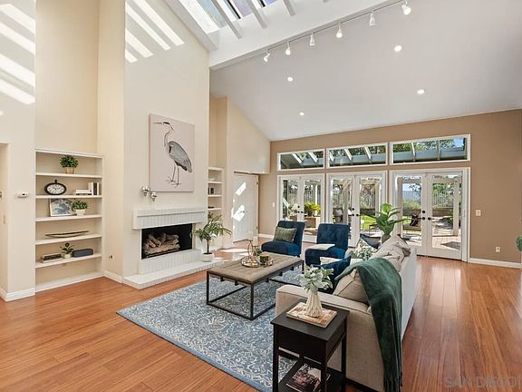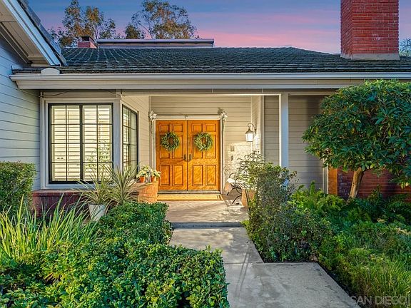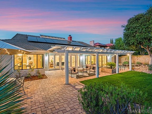 Experience refined single-level living in this sun-filled residence in the highly sought-after Chantemar community. Designed for comfort and relaxed elegance, the open floor plan features a spacious living room with vaulted ceilings, a cozy fireplace with built-in shelving, and skylights with electronic shades. The chef’s kitchen offers granite countertops, rich wood cabinetry, and opens to a warm family room with a fireplace and seamless access to the side yard—ideal for outdoor cooking. A formal dining room provides an inviting setting for entertaining with sweeping views of the backyard and open space. The expansive primary suite includes plantation shutters, a generous walk-in closet, dual sinks, a soaking tub, and tranquil views across the yard and canyon. The backyard is an entertainer’s delight with a stylish Alumawood patio cover, paver dining terrace, lush landscaping, manicured lawn, citrus trees, and scenic canyon vistas. Additional highlights include fully paid solar and a three-car garage. Chantemar is a peaceful, picturesque neighborhood south of Pomerado in the heart of Scripps Ranch. Surrounded by mountains, canyons, mature landscaping, and scenic trails, the community offers a family-friendly atmosphere and strong sense of connection. Enjoy nearby Fairbrook Park and private Chantemar amenities—including a pool, spa, playground, and tennis courts—plus close proximity to parks, walking trails, Lake Miramar, shopping, dining, and top-rated schools. A formal dining room provides an inviting setting for entertaining with sweeping views of the backyard and open space. The expansive primary suite includes plantation shutters, a generous walk-in closet, dual sinks, a soaking tub, and tranquil views across the yard and canyon. The backyard is an entertainer’s delight with a stylish Alumawood patio cover, paver dining terrace, lush landscaping, manicured lawn, citrus trees, and scenic canyon vistas. Additional highlights include fully paid solar and a three-car garage. Chantemar is a peaceful, picturesque neighborhood south of Pomerado in the heart of Scripps Ranch. Surrounded by mountains, canyons, mature landscaping, and scenic trails, the community offers a family-friendly atmosphere and strong sense of connection. Enjoy nearby Fairbrook Park and private Chantemar amenities—including a pool, spa, playground, and tennis courts—plus close proximity to parks, walking trails, Lake Miramar, shopping, dining, and top-rated schools.