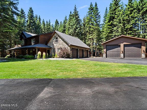 Welcome to this estate home centrally located in Hayden on 1.62 treed acres. This home boasts over 3,500 sq ft and is upgraded throughout with a spacious floor plan that offers 4 bedrooms, 3.5 baths, main floor master suite with 2 walk in closets, remodeled master bath with garden tub, glass showers, and double vanities. The main floor offers plenty of light with floor to ceiling glass, open rustic log railing, new flooring, open kitchen design with live edge granite, downdraft cook top, wall oven, wine fridge, custom cabinets, large walk-in pantry and a formal dining space for entertaining. Upstairs features include great entertainment space with large family/TV room, two bedrooms that share a jack-and-jill bath and another