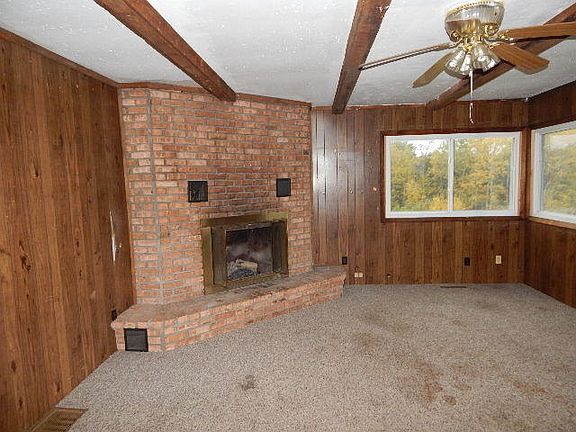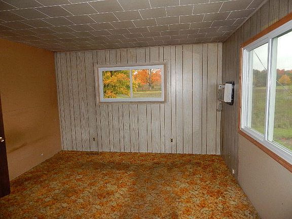 Great getaway: 1 bedroom, 1 bath home offers a living room and a family room with a fireplace. On 10 acres for $28,400