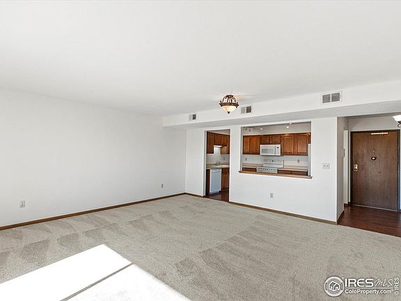 2 bedroom, 2 bathroom condo with all new carpet and new paint. One of Broomfield's finest independent senior living condominiums. Open floor plan with breakfast nook/flex area and great room. Large primary suite with private 3/4 bath with generous walk-in closet. Secondary bedroom perfect for guests, office, roommate or caretaker. Second floor south facing balcony with amazing natural light. In unit laundry with full size washer and dryer is designated laundry room. This building is truly top notch with a desirable location within walking distance to trails, recreation centers, senior centers, shopping and more. Get involved in many of the building organized events or just enjoy your private and independent living condo. Building has a community room with full kitchen, game room, large lobby/gathering space, foyer/sun room, workout room, sauna, library and more. Shuttles to the Broomfield Senior Center and other senior resources are available. Take comfort in the secured entrance and underground community garage. This unit comes with a large 10x10 storage unit and 1 garage space. Great parking lot for second cars or guests right out front. HOA is $422 per month and heat is $28 per month that is your fixed heating bill for 12 months and evaluated every Feb based on previous year usage. Well maintained end unit with close proximity to elevator that takes you floor to floor including the garage and storage area. Also directly next to an upper level seating area and staircase for easy garage and parking lot access.