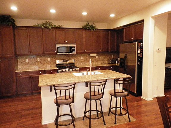 Sparkling Clean Spacious Upgraded Home for carefree living. 4 bedrooms, 2 1/2 baths, dark cabinetry, kitchen island with granite counters, loft built-in desk and more. Attached 2 car garage with direct access.Neighborhood community features: gated, pool, spa, courtyards with lawns.