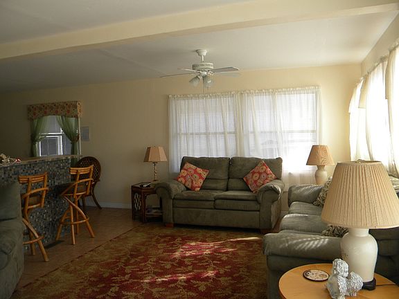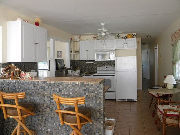 This impressive TURNKEY FURNISHED home has been completely renewed and located in a 55 Adult Community. Enjoy the open-concept in the Living, Dining Room and Kitchen areas. The home has terrific updates including tile flooring though-out, sheet rock walls though-out, Florida Room with heat and air, kitchen, bath, plumbing, private area of the park and a outdoor shower. Clean and move-in ready! Bring your toothbrush and bathing suit and claim your slice of tropical paradise today!