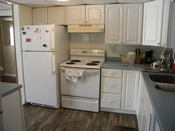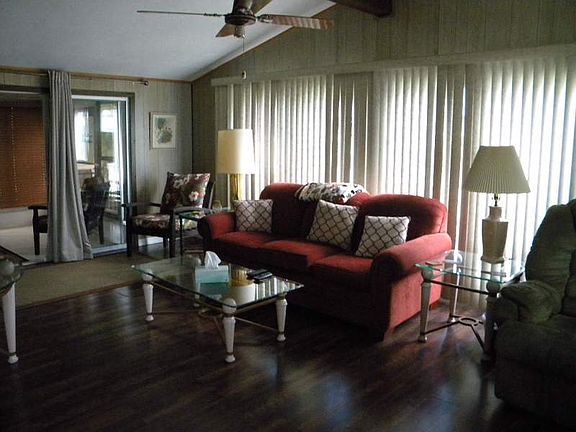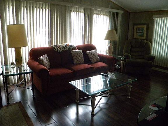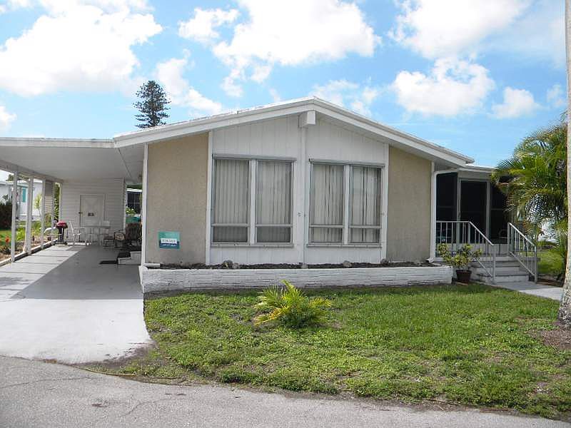 This home offers a roof over, large shed, new water heater, Goodman air-conditioner (3 years old), laminate floors, update sub floors, updated kitchen cabinets, large Florida Room, ceiling fan, cathedral ceiling in the living room, walk-in closet, 2 bedrooms and 2 baths. Nice location in the community across the street from the clubhouse, pool and hot tub. Easy access in and out of the park. This home won't last long, call for an appointment today!