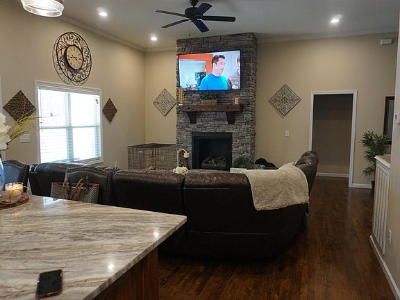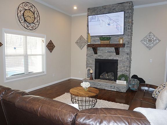 Choose country living in this beautiful 4 bedroom, 2.5 bath custom built home with much to offer! With 5.41± acres mainly wooded, in-ground pool & paved road frontage, you can enjoy privacy yet be convenient to town! Enter the home through charming double front doors & take in the open floor plan with family room, massive stack stone fireplace/gas logs, tray ceiling, & hardwood floors. Kitchen has all stainless appliances and vent hood, double oven, granite counter tops, oversized island, tiled back splash, custom built cabinets, & dining room. Master suite includes master bedroom with tray ceilings, master bath with double vanities, jetted tub, ceramic tile walk-in shower, & room size closet. There are 3 additional bedrooms, full bath and half bath. Home has 9 ft. ceilings, concrete drive, 2 car garage, & city water. Outdoors boasts 18x36 in-ground, saltwater system pool, castle block retainer wall & completely fenced. Relax on the covered back porch, chill by the pool!