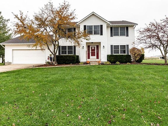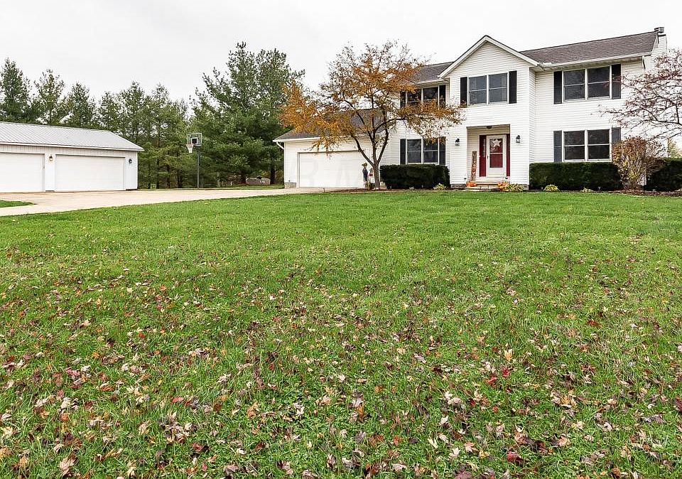 Enjoy country living and room for big toys! This 2-story 4 bedroom 2.5 bath home has TWO detached buildings on 5 acres! 30'x40' 4 car garage has electric and overhead doors. The 24'x32' building has electric, wood-burning stove. Enjoy the fire pit and huge paver patio (2016). Home offers wood floors, granite counters, stainless appliances (2019), first floor laundry, dining room, den for home/school office. Gas fireplace in the family room keeps you cozy. Finished basement for extra entertainment space, perfect for the family to spread out. Water softener and reverse osmosis system (2018). Whole home generator. Invisible fence for the fur babies, and plenty of space for small livestock or 4H projects. Northridge Schools. SEE A2A