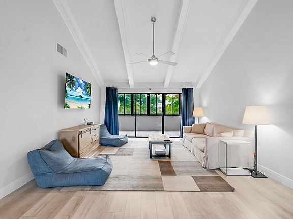 Beautifully renovated 3 bedroom / 2 bath condo located in the wonderful community of The Shores. A rarely available corner unit on the top floor has an attractive open floor plan that features vaulted ceilings, updated flooring throughout, an enclosed balcony, and oversized laundry. Recently renovated master bathroom and custom closets. Enjoy the new stainless steel appliances and breakfast bar, perfect for entertaining family and friends. AC 2022, Water Heater 2019. One of the only condo buildings in Wellington with an elevator. Just minutes away from WEF and Global show grounds. Come see it for yourself before it's gone!
