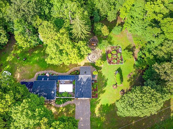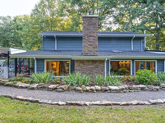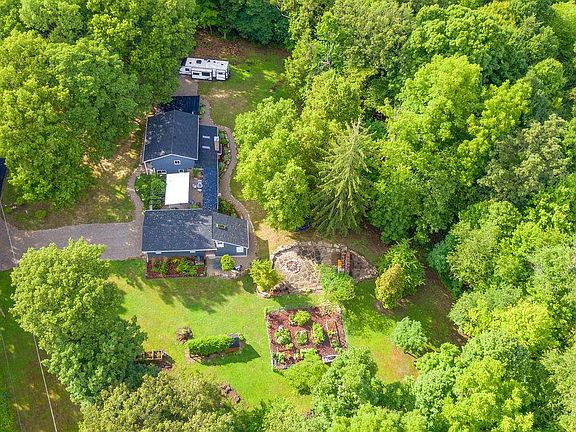 CAN'T SEE A NEIGHBOR! 26+ mostly wooded acres with trails, natural spring & creek. Completely renovated & perfect for entertaining. Move in ready home has 3 bedrooms, 1 and a half baths, eat in kitchen complete with matching appliances & gorgeous sunroom full of windows. Patio w/ pergola & fishpond/fountain. A covered sidewalk leads to the semi attached garage & office/bonus space w/ 290 sq. ft. including loft (not included in sq. footage of house). Gravel pathways lead around house and to gardens. Flagstone fire pit overlooking garden/coop area. Attached lean-to has electric & 480 sq. ft. of covered storage/parking/entertainment space. New roof/soffit/fascia/siding/windows 2017. New AC 2019. New well pump/service 2020.