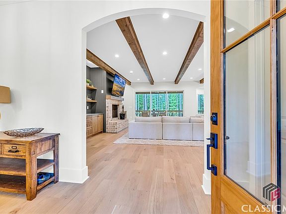 Nestled on a serene 12.75-acre parcel in the heart of Oconee County, this exceptional 4-bedroom, 4.5-bathroom residence epitomizes luxury living. Custom-built to perfection, the home boasts an array of remarkable features that seamlessly blend elegance with functionality. Upon arrival, the inviting rocking chair front porch sets the tone for what lies beyond. Step through the stained French doors into an expansive foyer, where you're greeted by the awe-inspiring grandeur of the open great room and kitchen area. Adorned with a majestic masonry fireplace, cedar block mantle, and exposed stained beams, the great room seamlessly merges indoor and outdoor living through one of three 12-ft sliding glass doors. The gourmet kitchen is a culinary enthusiast's dream, featuring custom floor-to-ceiling cabinets, exquisite tile backsplash, soapstone countertops, and top-of-the-line commercial-grade appliances. A spacious mud area with locker-style cabinets is great for all your kids school and activity supplies. This leads to a convenient walk-in pantry with Costco door from the garage, for ease of unloading groceries, and a well-appointed laundry room. The master suite exudes tranquility with its cathedral ceiling, exposed beams, and direct access to the expansive covered porch overlooking the lush backyard. The ensuite master bath is a luxurious retreat, complete with dual granite vanities, a jetted tub, tiled steam shower, and a generously sized walk-in closet. Upstairs, three generously sized bedrooms each boast private baths, while a loft area and large bonus room offer versatile living spaces. The unfinished basement provides endless potential, with space for a bedroom, bathroom, rec room, gym, dog room, and safe room. Outdoor living is equally impressive, with a covered porch featuring an outdoor fireplace, grilling deck, and ample patio space for entertaining. Thoughtfully designed with pool readiness in mind, the backyard is bordered by a picturesque creek and heavily secluded grounds. Additional highlights include spray foam insulation, tankless hot water heaters, Ring cameras, motion sensor lighting, 4 HVAC units, and high-speed fiber internet connectivity. Ideally located within Oconee County's award-winning school district and just a short drive from Wire Park, downtown Watkinsville, and UGA, this remarkable home offers the perfect blend of luxury, comfort, and convenience.