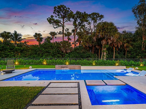 Behind the gates of highly sought-after Breakers West is this move-in ready renovated home that offers the ultimate in indoor & outdoor living. Featuring 3 bedrooms plus interior office, the 3,480 SF residence impresses with 14-foot ceilings, rich wood flooring, abundant character, and sweeping sunset views. The open-concept living and dining areas seamlessly extend to a covered outdoor entertaining space overlooking a heated saltwater pool with spa, sun shelf, and a striking waterfall feature. Set on a private .49-acre lot, the home backs onto the 4th and 5th fairways of the Mayacoo Lakes Golf Course beyond the fenced yard and lush privacy landscaping. At the heart of the home is a chef's dream kitchen, complete with dual islands, quartzite and honed soapstone countertops, a 48" Sub-Zero refrigerator with wine column and fridge drawers, a 48" Wolf gas range, two oversized sinks, and an abundance of floor-to-ceiling cabinetry. A serene primary suite boasts His & Her California Closets and a luxurious spa-style bath with mosaic marble floors, a soaking tub, and a spacious 6x6 walk-in shower. A second bedroom features beautiful arched windows and a built-in queen-size Murphy bed with built-in storage, making it ideal as a guest room or office. POTENTIAL TO ADD EN-SUITE FULL BATH. The desirable split floor plan also includes an oversized third bedroom with en-suite bath, a bonus interior office and a private laundry area tucked away from the main living spaces. Offered fully furnished, this home is move-in ready with thoughtful details throughout including floor-to-ceiling custom drapery, impact windows (with a few accordion shutters) and a charming authentic Chicago brick driveway. Breakers West is in a prime location - convenient to downtown West Palm Beach, Wellington's equestrian venues, PBI and the incredible shopping and beaches of Palm Beach Island. Residents enjoy the security of manned gates and roving patrols along with access to two private clubs. Golf and Social memberships are OPTIONAL at either Breakers West (offering exclusive privileges at The Breakers Hotel) or Mayacoo Lakes Country Club. FULL LIST OF RENOVATIONS and WALK-THROUGH VIDEO AVAILABLE.