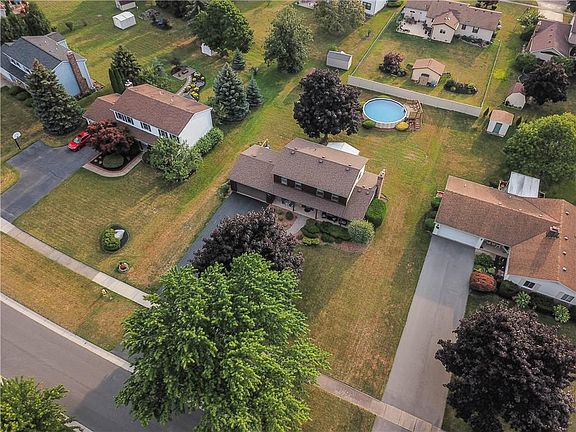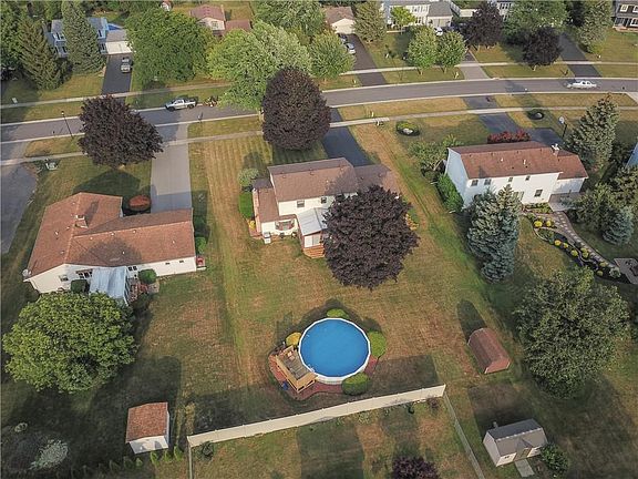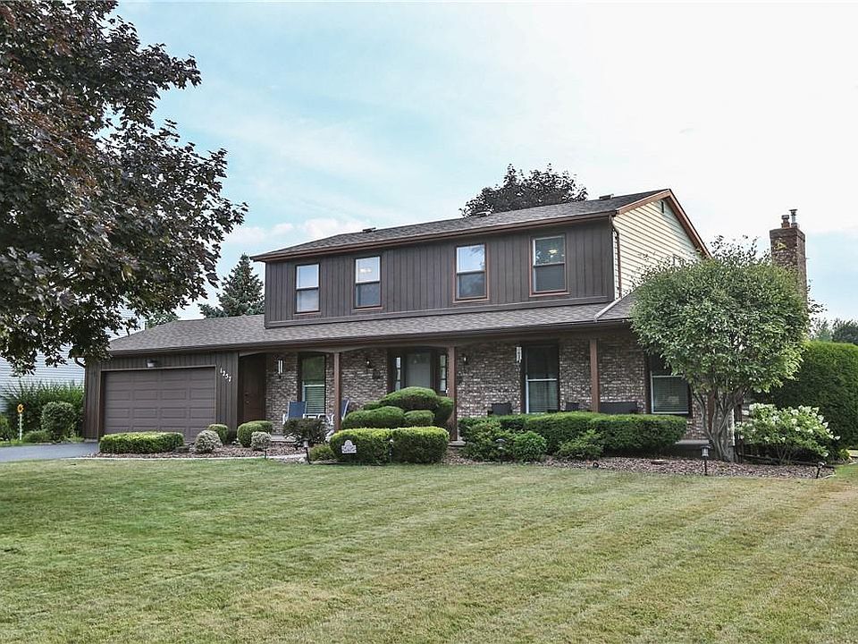 Absolutely nothing to do but move in! Beautiful newly updated Colonial. In the last two years, new windows, brand new white kitchen with granite countertops, new stainless steel appliances, tile backsplash, new sink & faucet. Fresh paint throughout. All new flooring (except main bath updated in 2012). New carpet in the basement, new hardwood floors in dining room, new carpet in living room, family room & bedrooms & new tile in the foyer, kitchen & powder room. New banister, spindles & hardwood stairs. New light fixtures & new interior doors & hardware. Updated powder room with new toilet, vanity, mirror & light. New stacked stone fireplace surround, new crown molding & Ring doorbell. LED lights in primary bedroom & in wonderful 14 x 13 enclosed porch overlooking beautiful backyard with above ground pool, shed & custom landscaping. Roof (tear off 2016), hot tank and furnace (2013). Bedroom 3 and 4 combined to make one huge bedroom, but can be converted back. 2nd fully functional kitchen in partially finished basement. Don't miss the drone video tour!
