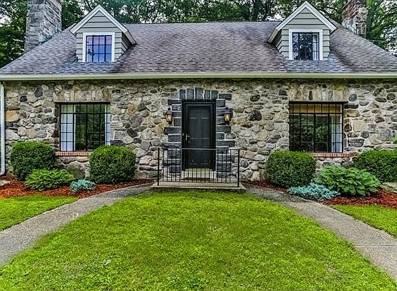 Full of Charm & Character! This romantic storybook stone cottage sits on gorgeous one acre lot convenient to everything. Lovely living room w/f.p. & h.w. flrs. Formal din rm and eat in kitchen. 1st flr office w/built in. Large 1st floor bedroom. Green house/sunroom. Oversized great room w/h.w. and vaulted ceiling. Mbr suite features full bath. Finished basement w/f.p. Backyard w/patio and fire pit is magical on summer evenings. Great for BBQ's and roasting marshmallows. Great home for entertaining large parties. Circular Driveway. Expansion possibilities over garage. Close to train, shopping, parks, highways. Built to last this home is truly one of a kind!