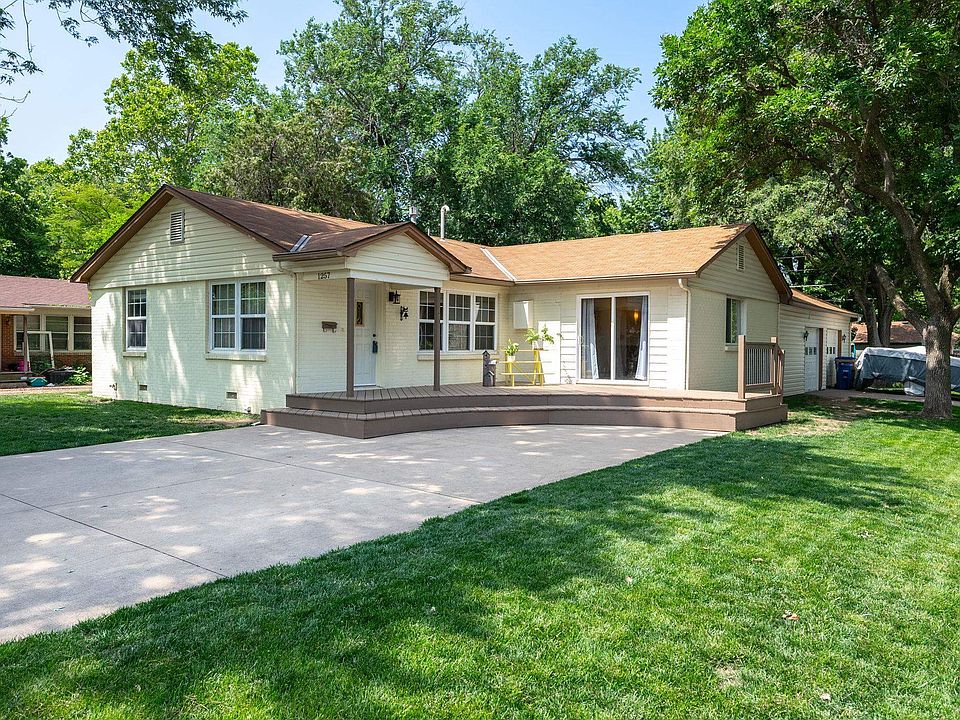 This delightful 3-bedroom, 1 bathroom residence at 1257 N. Westview in Derby offers a perfect blend of comfort and charm. As you step inside, you will be greeted by the lovely living room which leads to the fully appliance kitchen with ample storage space and an adjoining dining space. The spacious family room features a cozy gas fireplace, built in entertainment center, and a sliding glass door that opens to the front deck/porch, perfect for morning coffees or evening relaxation. Outside, you will find a fully fenced backyard with a covered patio, ideal for outdoor gatherings with friends and family. The oversized 2 car side load garage provides plenty of space for vehicles and additional storage. This home offers everything you need in a great location. Don't miss the chance to make it yours. Schedule your private showing today!