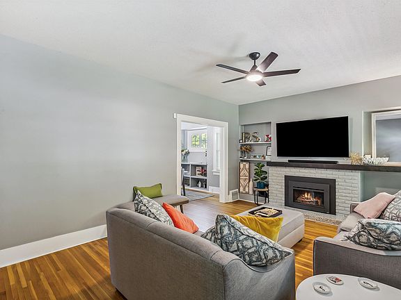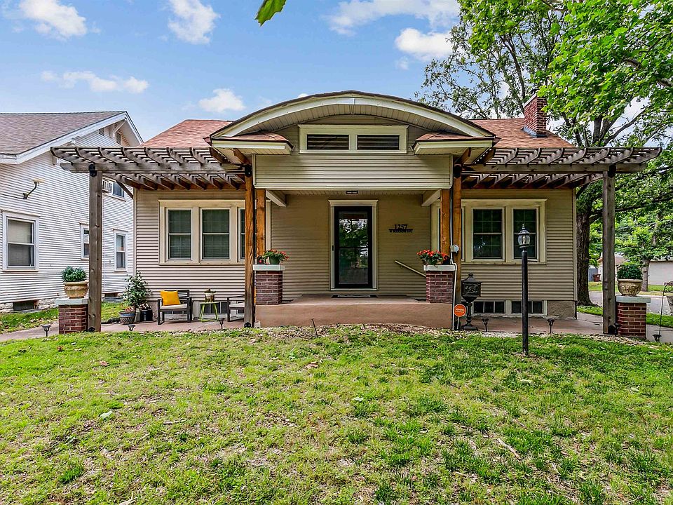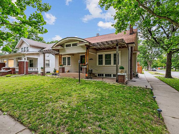 Welcome to this stunning Bungalow located in the highly sought-after Riverside neighborhood of Wichita. Set on a generous corner lot adorned with mature trees, this home exudes charm and sophistication. Step inside and be captivated by the expansive living room boasting original built-ins and a warm fireplace, complemented by newly refinished hardwood floors that extend throughout most of the main level. The formal dining room continues the theme of elegance with additional built-in storage, creating a perfect space for entertaining. The kitchen, updated and spacious, featuring granite countertops, tile flooring, open shelving, and a cozy breakfast area. Also on the main level, discover two inviting bedrooms, each with original hardwood floors, alongside a beautifully appointed, renovated full bathroom and a convenient half bath with main level laundry hookups. Descend to the fully finished basement, where you'll find additional living space, the 3rd bedroom, a second laundry area, and a full bath. Currently utilized as a primary bedroom and dressing room, this versatile space offers endless possibilities. Outside, the backyard beckons with ample room for recreation, gardening, and hosting gatherings. A new wood fence ensures privacy, while the inviting patio, complete with a pergola, is the ideal spot to unwind with your favorite beverage. The detached 2 car garage is a bonus and includes opener with keypad entry! Meticulously updated while preserving its original charm and character, this home is a true gem. With such remarkable features, this property won't be on the market for long. Don't wait—schedule your private showing today and make this picturesque home yours before it's gone!