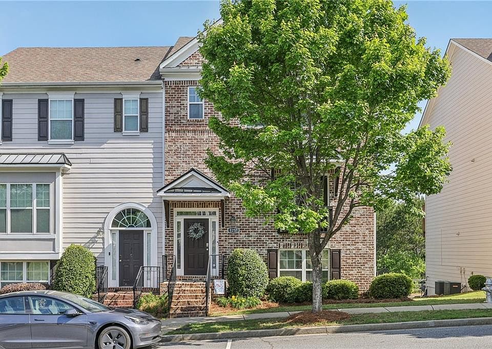 Welcome to this beautifully crafted corner townhome, where curb appeal meets comfort and elegance. With its charming brick front, this home instantly captivates, offering a warm and inviting atmosphere. The main level boasts pristine, easy-to-maintain laminate wood flooring that flows seamlessly throughout, creating a modern and cohesive feel. The spacious, sunlit living room features a cozy fireplace, perfect for cozy nights in, and an elegant chair railing that adds an extra touch of sophistication—ideal for both relaxation and entertaining. The gourmet eat-in kitchen is truly a chef’s dream! Highlighted by stunning granite countertops, a stylish tile backsplash, and sleek stainless steel appliances, it is as functional as it is beautiful. A delightful Juliet balcony fills the space with natural light and fresh air, enhancing the inviting atmosphere of the heart of this home. Upstairs, the expansive primary suite is a true retreat, featuring a vaulted ceiling that elevates the sense of space and openness. The en-suite bath is a spa-like sanctuary with dual sinks, a separate soaking tub, and a glass-enclosed shower—perfect for unwinding after a long day. A second generously sized bedroom also enjoys a vaulted ceiling, walk-in closet, and its own private en-suite bath, providing both comfort and privacy for family or guests. The lower level offers even more versatility with a third bedroom and full bath, ideal for use as a home office, guest suite, or space for multi-generational living. Step outside to the back balcony, where you’ll be treated to serene, picturesque views of the wooded area and pond, providing a peaceful backdrop for relaxation or morning coffee. Additional highlights include a spacious 2-car garage and ample storage options throughout the home, ensuring you have room for all of your essentials. As part of the sought-after Suwanee Station community, you’ll have access to resort-style amenities, including a refreshing pool, kiddie pool, tennis courts, pickleball courts, a pavilion, and a clubhouse with a fully equipped fitness center. The beautifully landscaped green spaces are perfect for picnics, and the well-lit walking trails offer a peaceful escape just outside your door. Conveniently located near popular dining spots and grocery options—such as The Fresh Market—this townhome is just a short stroll away from Suwanee Town Center, where you can enjoy a variety of restaurants, breweries, parks, and live concerts. You’re also just minutes away from the scenic Suwanee Creek Greenway, offering miles of walking trails, all within the top-rated Suwanee school district. Don’t miss out on this exceptional opportunity to own a home that combines comfort, space, and style in a picturesque setting. Schedule your private tour today and experience everything this remarkable townhome has to offer!