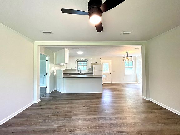 Discover this updated home with over one and a half acres of land in Ashford, AL. This property offers a perfect blend of modern comfort and peaceful rural living. This refreshed home has plenty of privacy and space, and is conveniently located near shopping, food, and groceriesk. The home has been recently updated with new paint inside and out, and new luxury vinyl plank flooring throughout. The three bedrooms feature new ceiling fans, offering comfort and energy efficiency. The bathroom has been updated with modern fixtures for a clean, contemporary design. The bright kitchen offers functionality as well as ample storage space. There is also a family room, laundry room and flex room that could be used in many different ways. This sale includes an adjacent wooded lot, expanding the property to more than an acre and a half with ample potential for future use. The low maintenance metal roof is approximately 10 years old. This property also features a large shed (approximately 10'x20') with electricity, ideal for storage or a workshop, plus a smaller metal shed for additional storage needs. The property also features a well (currently unused) for potential water options. The septic tank was recently pumped in April 2024.