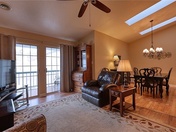 This well-maintained three-bedroom condo has calming views of the Beaver River from the private deck which is accessible through the living room patio door. The third bedroom is currently used as a den. In 2022 two skylights were installed in the dining room and a sky tunnel skylight was installed in the kitchen. 2020 updates to the kitchen include granite countertops, backsplash, new sink and garbage disposal, and stainless steel appliances. The Bosch dishwasher is very quiet! All rooms were painted in 2020 including ceilings, doors and trim, and all cabinets. The condo roof was installed in 2019. This is a second floor unit. The single car garage features a substantial overhead storage area accessed by a sturdy pull-down stairway. Also, there is an inside stairway in the common area to access the second floor condos that owner could request HOA approval for a stair-glide.