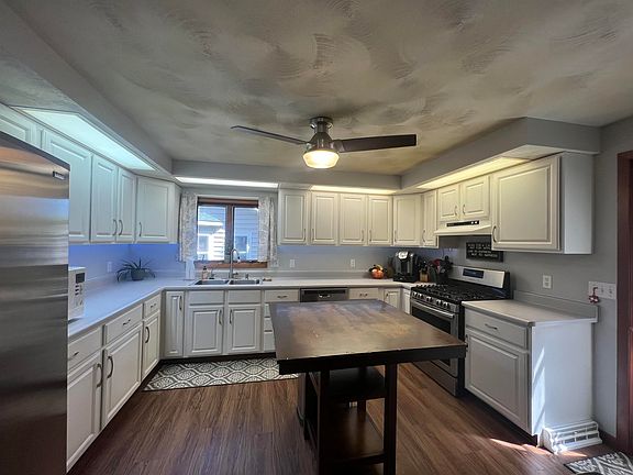 Move in ready 4 bedroom 2 bath with lots of updates and features to enjoy. Main floor bedroom, full bath and laundry. Large eat-in kitchen, front and side porch. Large primary bedroom has 3 closets and one of the other bedrooms has a built-in desk so great workspace for kids or a home office. 2 car garage, large backyard, storage shed, deck off back of house with overhang covered area too. Vinyl siding and windows, central air.