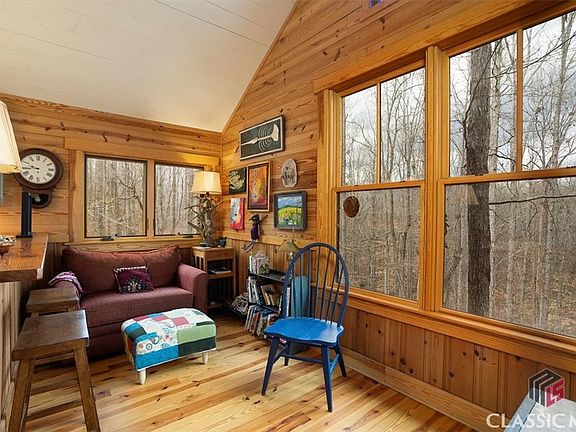 What once was a 20x20’ cabin built in the early 1990’s, transformed in 2015 to a welcoming “kitchen house” that became integrated into a stunning two-story home designed by Athens’ architect, Van Strickland and master builder, Scottie Edwards. The kitchen house boasts a large covered eating porch, an open-concept kitchen, granite countertops, customer cabinetry, high-end appliances including an induction range, cedar wainscoting, vaulted ceilings w/ exposed beams, large double-paned windows and salvaged stained glass accent windows, multiple seating options, soapstone wood stove w/ a local granite hearth and separate heat pump. A thoughtfully designed breezeway floats from the kitchen house to the rest of the living space and includes an ample pantry, shelved utility closet, large coat closet, bright, airy seating and napping nook w/ deep drawers and a hidden sliding table, French doors leading to a large deck and covered porch. Further down the breezeway is a stunning primary bathroom, ample laundry closet w/ controls to a dual zone-heat pump and a jaw-droppingly beautiful master bedroom w/ walk-in closet, walls of windows and a glass slider door to a covered porch w/ incredible views. The downstairs portion of the house is equal to the beauty and craftsmanship of the first floor w/ a large multifunctional room suitable as a second bedroom, office, gym, den or all of the above, an additional bathroom, wood stove w/ local granite surround and hearth, deep walk-in closet, alcove suited for extra fridge/freezer. Lovingly handcrafted details throughout, including pine walls and ceilings (no sheetrock), 45+ large windows and glass doors gives every room abundant natural light and incredible views, covered porches and decks on multiple levels, perfect for entertaining or quiet introspection.