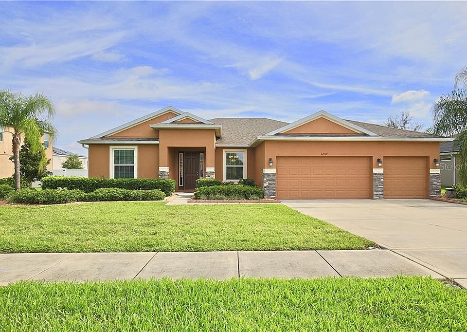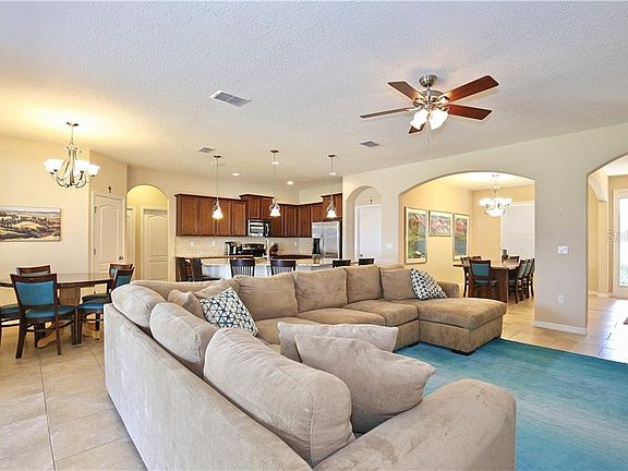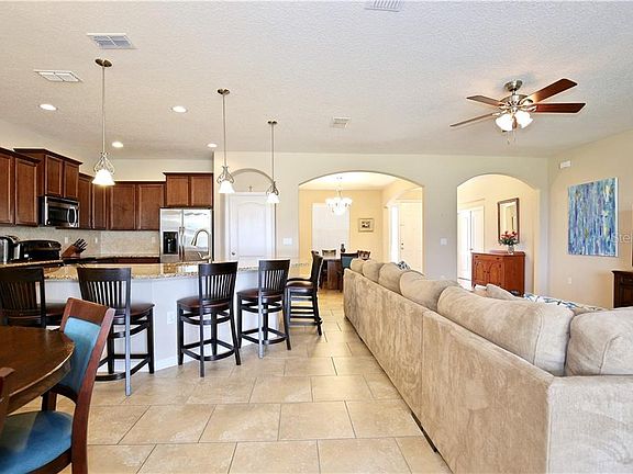 This move-in ready 4 bedroom, 2 bathroom home is located in Rock Springs Ridge community. Nearby, The Fields of Fame at Northwest Recreation Complex in Apopka host a variety of ball fields, tennis and volleyball courts, walking trail, and an amphitheater. Within the neighborhood, The Tavern at Rock Springs Ridge, enjoy wood-fired pizza, burgers and wings with your neighbors. This 3 car garage home is located on a cul-de-sac with sidewalks and streetlights for added safety. The open, split floor plan welcomes you with beautiful offset tiles and archways throughout the formal dining room and family room. The formal living room has double doors to create added privacy for an office or another living space. Kitchen has granite counters, tile backsplash, pendant lights, breakfast nook and spacious breakfast bar, walk-in pantry, stainless steel appliances including a 2018 installed Bosch dishwasher, and steel sliding cabinet organizers in most lower cabinets. Master bedroom features his and her walk-in closets and sliding glass doors leading to the Lanai. Master bathroom has dual sinks, garden tub with separate shower. 3 bedrooms on the other side of the home all have ceiling fans. Second bathroom has dual sinks and leads to the Lanai. Brick pavers have been added to Lanai's edge to extend the porch along with concrete bed liner and river rocks around the home. Come by and check out the beauty of this home and community.