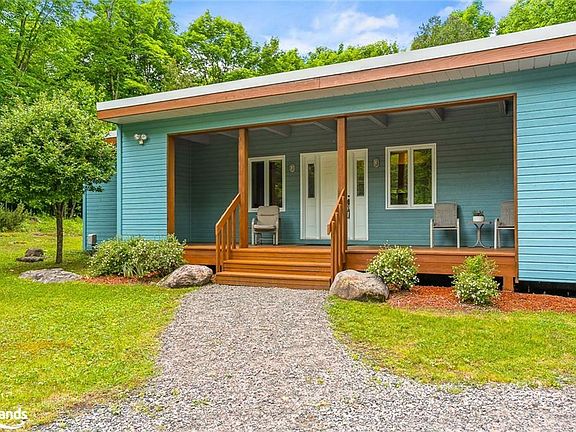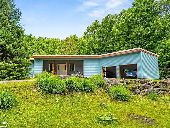 Experience the tranquility of Eagle Lake and the vibrant Sir Sam's community in this beautiful 3-bedroom, 2-bathroom home, set on a sprawling 3.35-acre lot just minutes from the ski slopes. As you enter, a welcoming foyer leads to a bright and open living area, seamlessly connecting the dining space and kitchen. Enjoy the warmth of a propane fireplace on cool evenings, with vaulted ceilings featuring BC fir beams, rich red Russian oak flooring throughout, and expansive windows that bring the stunning outdoors in. A sliding glass door opens onto a spacious back deck, perfect for relaxing or entertaining. The thoughtful design includes three large bedrooms, with a generous primary suite that boasts an ensuite bathroom, a roomy walk-in closet, and direct access to the deck, offering peaceful views of the property. Wake up to the gentle sounds of nature each morning. The home also includes a spacious laundry room with plenty of storage, catering to convenient main-floor living. This property is the perfect year-round retreat, ideal for hosting friends and family. In the summer, enjoy mountain biking, exploring nearby lakes, and hiking scenic trails. In the winter, hit the slopes for skiing and snowboarding, all just a stone's throw away. The stunning fall colors and vibrant spring blooms make every season memorable. Nearby, the Eagle Lake Store provides your essentials, while the public beach and boat launch are just minutes away for a day of fun on the water. For more dining, shopping, and entertainment options, a quick 15-minute drive will take you to Haliburton Village, where you can explore local shops and restaurants. Don't miss this chance to own a slice of paradise where outdoor beauty meets comfortable living. Schedule your showing today and discover the charm of this remarkable home and its breathtaking surroundings.
