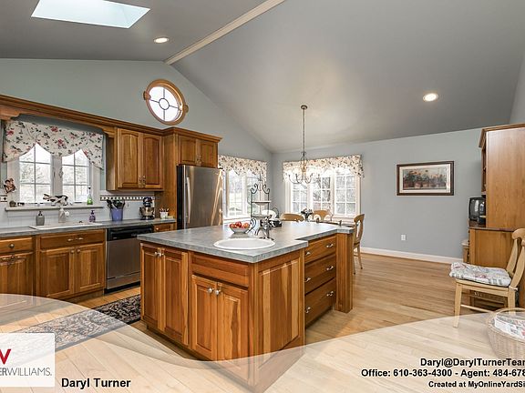 Welcome to 1257 Surrey Road, located in the desirable neighborhood of Thornbury Estates. This 3 Bedroom, 2.5 bathroom home, nestled on a large, flat acre of land, has been thoughtfully updated and meticulously maintained over the years and is now being offered to new owners. As you approach the home, the curb appeal is evident, with professionally installed stone and stucco exterior (over a brick shell), custom landscaping and a tailor-made front entry door with sidelights. Welcome your guests into the bright, open foyer and invite them to retreat with you to the large living room area which features hardwood floors, a wood burning fireplace with custom built-ins and a slate and glass tile surround and a large, vinyl bay window that bellows the daylight throughout the room. The adjacent dining room, which was the original kitchen, boasts custom wainscoting, chair rail and crown molding atop wide-planked hardwood flooring. The owners customized a kitchen remodel that expanded the home to the rear. The results do not disappoint! The enormous eat-in kitchen features vaulted ceilings and custom wood cabinetry. The oversized island combines a seating area and plenty of prep space with additional storage and a prep sink. The recessed lighting will probably rarely be used during the daytime as the room is surrounded by windows, skylights and a French door that leads out to the custom stone patio, which is perfect for entertaining guests during the warmer months. A few paces up the stairs leads you to the master suite which features an updated full bathroom, ceiling fan and oversized closet. Two additional generously sized bedrooms, each with ceiling fans and an additional updated bathroom round out this floor. Downstairs is a pleasant Family Room that features a wood burning stove on a brick display, perfect for the cooler months, and enough space for a multitude of uses. When the kitchen was expanded, the owners, did not stop there! They also built an additional game room underneath, with tile floors, drop ceiling and French Doors. This home also offers tremendous access to major routes, shopping, Downtown West Chester, Philadelphia and Delaware, in a scenic park-like setting. Make an appointment to see this one-of-a-kind home today!