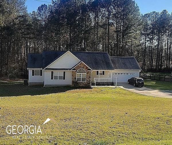 This lovely home in the Browns Place subdivision in Newnan is waiting for you! Located on 1.92 acres, you'll walk up to a ROCKING CHAIR FRONT PORCH you can hang out and relax at. Walking in you're greeted by BEAUTIFUL HARDWOOD FLOORING, open floor plan, vaulted ceilings and a STUNNING STONE FIREPLACE in the family room. Easy to clean granite countertops in the kitchen. The bedrooms are located to the left of the house with a HUGE OWNER'S SUITE having a spacious WALK-IN CLOSET, dual sinks in the nice sized bathroom with separate shower, and soaking tub. You'll love all the space on the WOODEN BACK DECK, perfect for entertaining and overlooking the private backyard with NO NEIGHBORS BEHIND YOU! There's not a lot on the market, come out and see this home today!